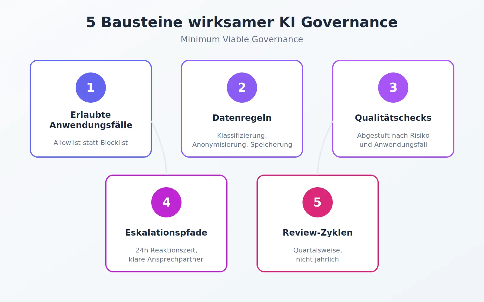 Effective AI Governance is not a set of rules, but a manageable framework. The concept of “Minimum Viable Governance” describes what actually works: essential controls that enable rapid innovation without ignoring risks.